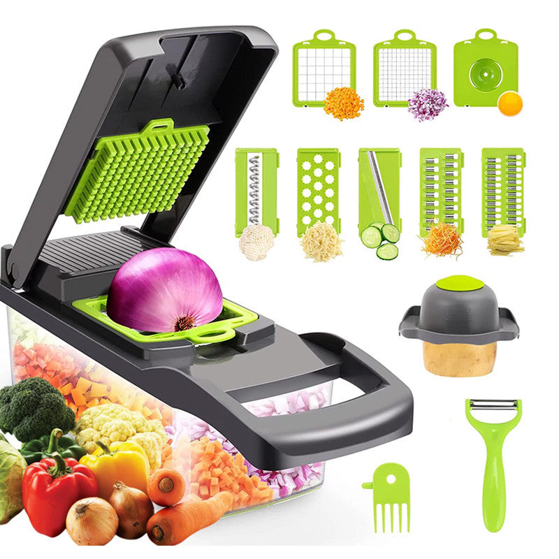 Make your kitchen work easier and more enjoyable with this 12-in-1 Kitchen Mandolin. Designed to simplify food preparation, it’s the perfect tool for slicing, dicing, grating, and chopping with ease and safety.